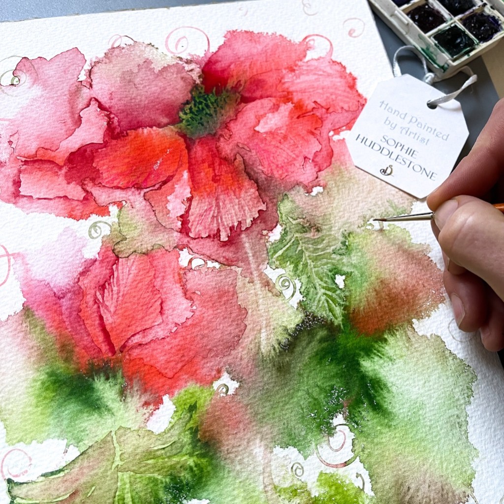This original painting is on traditional Blockingford watercolour paper, size size 31cm x 23cm (12″x9″). It is thick sturdy watercolour paper 300g/m2 140Lbs, acid free and archival. Hand painted in professional artists quality watercolour paints. Watercolour paintings would need to be in a glass picture frame. Because of the wide variety in personal frame choice this painting does not include a glass picture frame, nor a card mount. The photo of it in a glass frame is for demonstration purposes only to give other framing examples. (I advise a glass picture frame size approx 16″x12″ which has an inner card mount size of approx 12″x8″). If you have any questions about this painting please do get in touch, and visit the ‘reminders‘ page before you go, thanks Soph