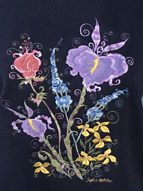 Embroidered Ladies Sweaters for sale designed by Sophie. Only a few remaining.