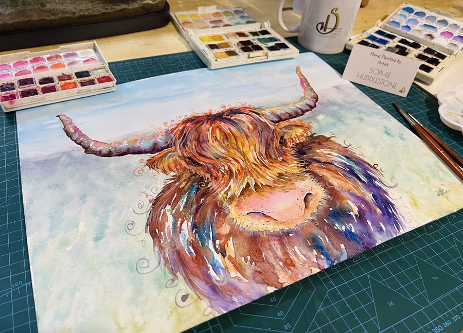 This original painting is on traditional Blockingford watercolour paper, size 41cm x 31cm (16″x12″). It is thick sturdy watercolour paper 300g/m2 140Lbs, acid free and archival. Hand painted in professional artists quality watercolour paints with ink details. Watercolour paintings would need to be in a glass picture frame. Because of the wide variety in personal frame choice this painting does not include a glass picture frame, nor a card mount. The photo of it in a glass frame is for demonstration purposes only to give other framing examples. (I advise a glass picture frame size approx 18″x14″ which has an inner card mount size of approx 16″x12″). If you have any questions about this painting please do get in touch, and visit the ‘reminders‘ page before you go, thanks Soph.