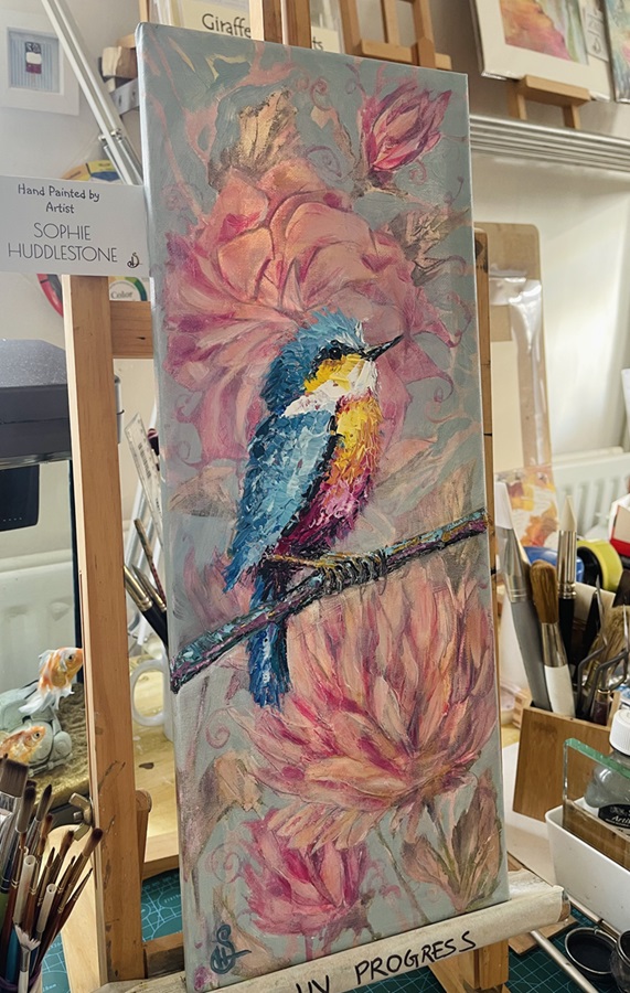 Original Canvas Painting. Hand painted in artists oil paints. The canvas size is approximately 50cm x 20cm x 1cm. Coated with Winsor and Newton gloss shimmer varnish which has UV protection. The canvas edges are also painted. This canvas could be hung up on a wall without a frame by balancing it on a nail, a picture frame and hanging fixings are not included. If you have any questions about this painting please do get in touch, and visit the ‘reminders‘ page before you go, thanks Soph.